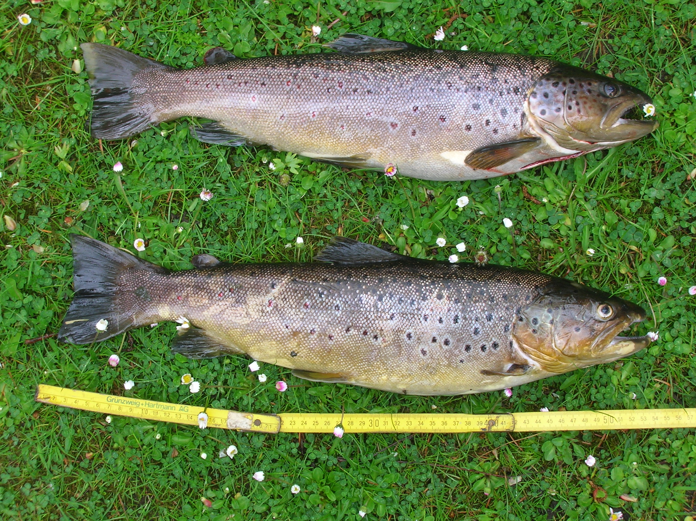 Beim Kontrollangeln des SAV Forelle Tetenhusen in der Bennebek am 09. Mai 2015 wurden zwei dreipfündige Bachforellen gefangen.